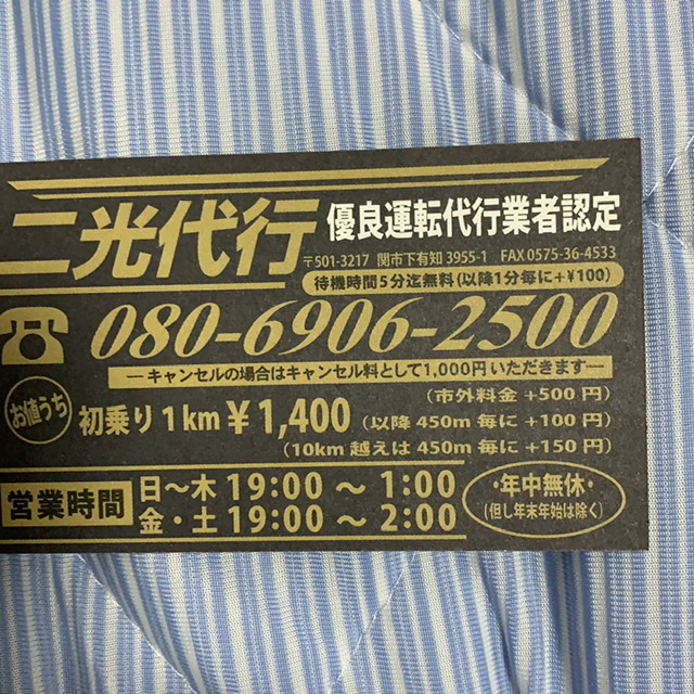 本日も1時迄営業致しますご依頼お待ちしてます関市で車両数NO.1の二光代行です待ち時間少なめですのでよろしくお願いします。